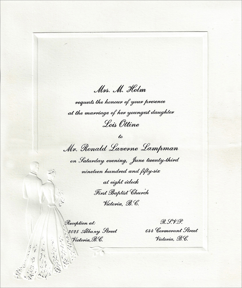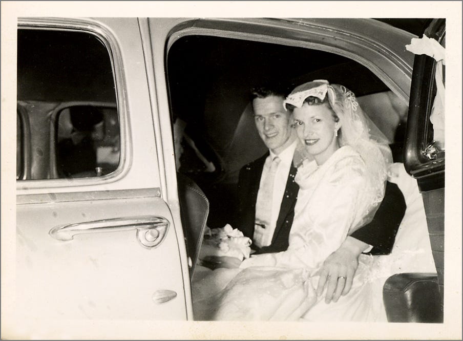 My parents were married in June, 1956. I can only imagine what my mother’s hopes and dreams might have been. She was twenty-four years old. I don’t know how they met, or how long they’d been together when they married. If I was told these things, I’ve long ago forgotten. Now I’ll never know.